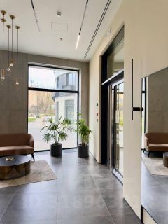 Красивая входная группа с консьержем. Огороженная и круглосуточно охраняемая территория. Шаговая доступность до метро, а также удобная транспортная развязка (15 мин до центра Москвы).
