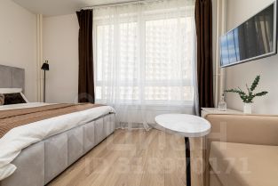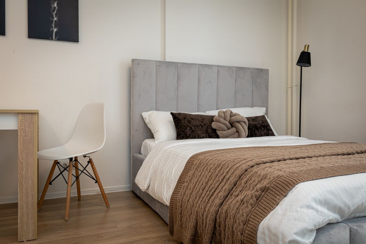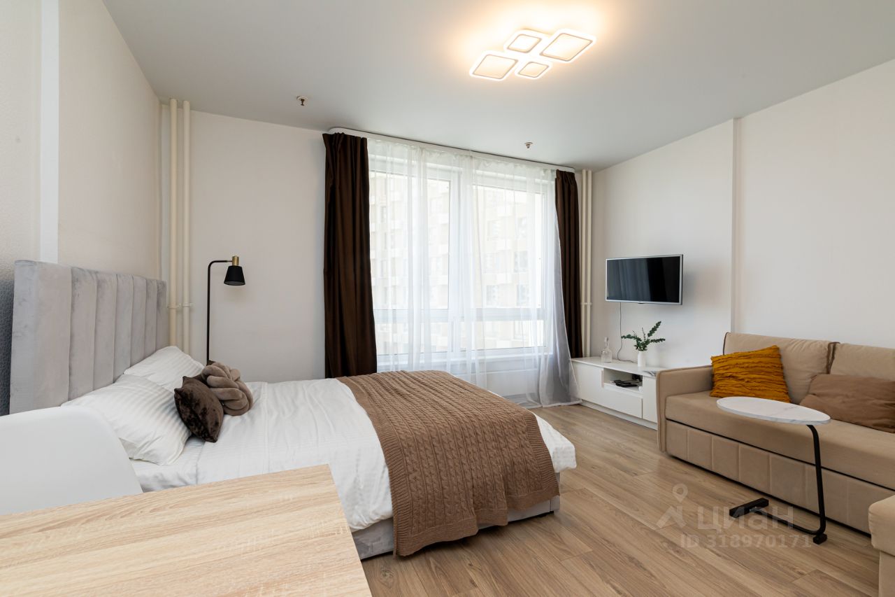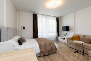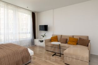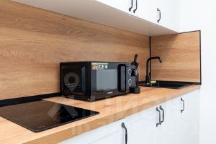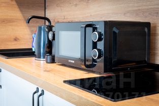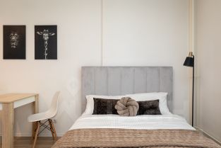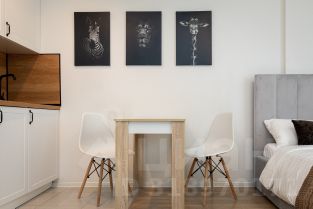 Просторная студия -29м2, двуспальная кровать, удобный диванный уголок, который раскладывается в двухспальную кровать. В квартире - тихо, окна выходят на закрытый зеленый двор. В этом-же здании — магазины, кафе, рестораны, пекарни, пункты доставки.