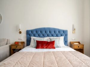 Квартира комфортна для проживания 9 человек. В квартире: две двуспальные кровати, два двуспальных дивана и один односпальный диван.