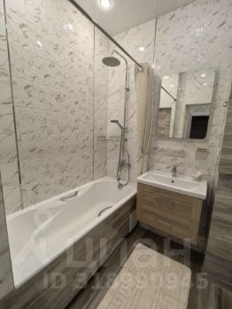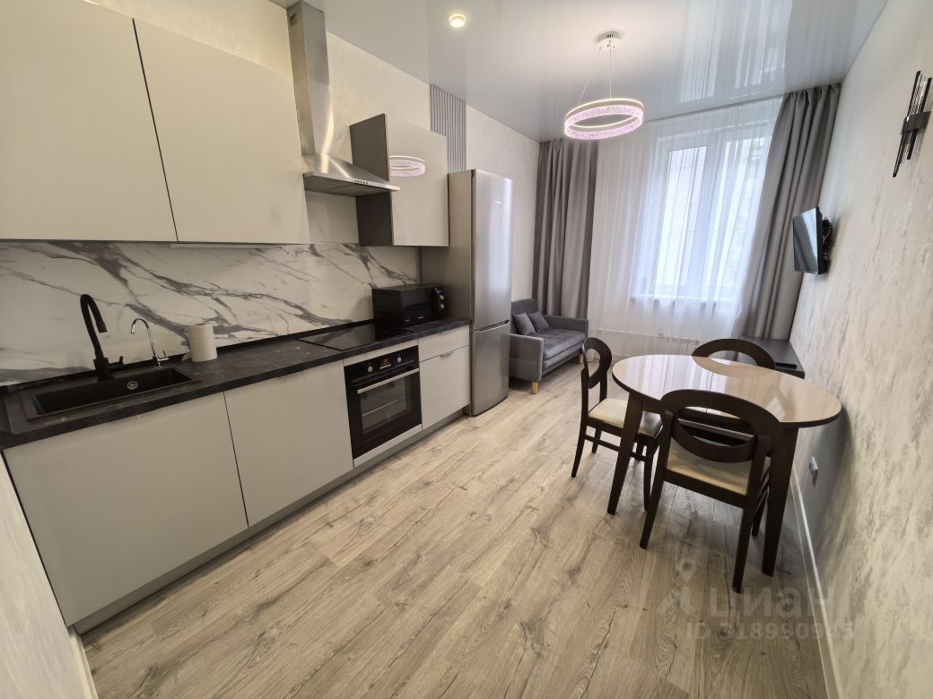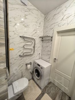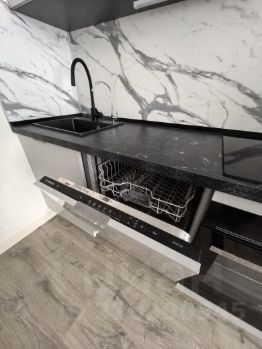 Квартира оформлена в дизайнерском стиле и полностью готова к проживанию. В комнате и на кухне есть вся необходимая мебель. Современная техника включает кондиционер, холодильник, посудомоечную и стиральную машины, а также телевизор. Санузел совмещённый, в нём установлена ванна.