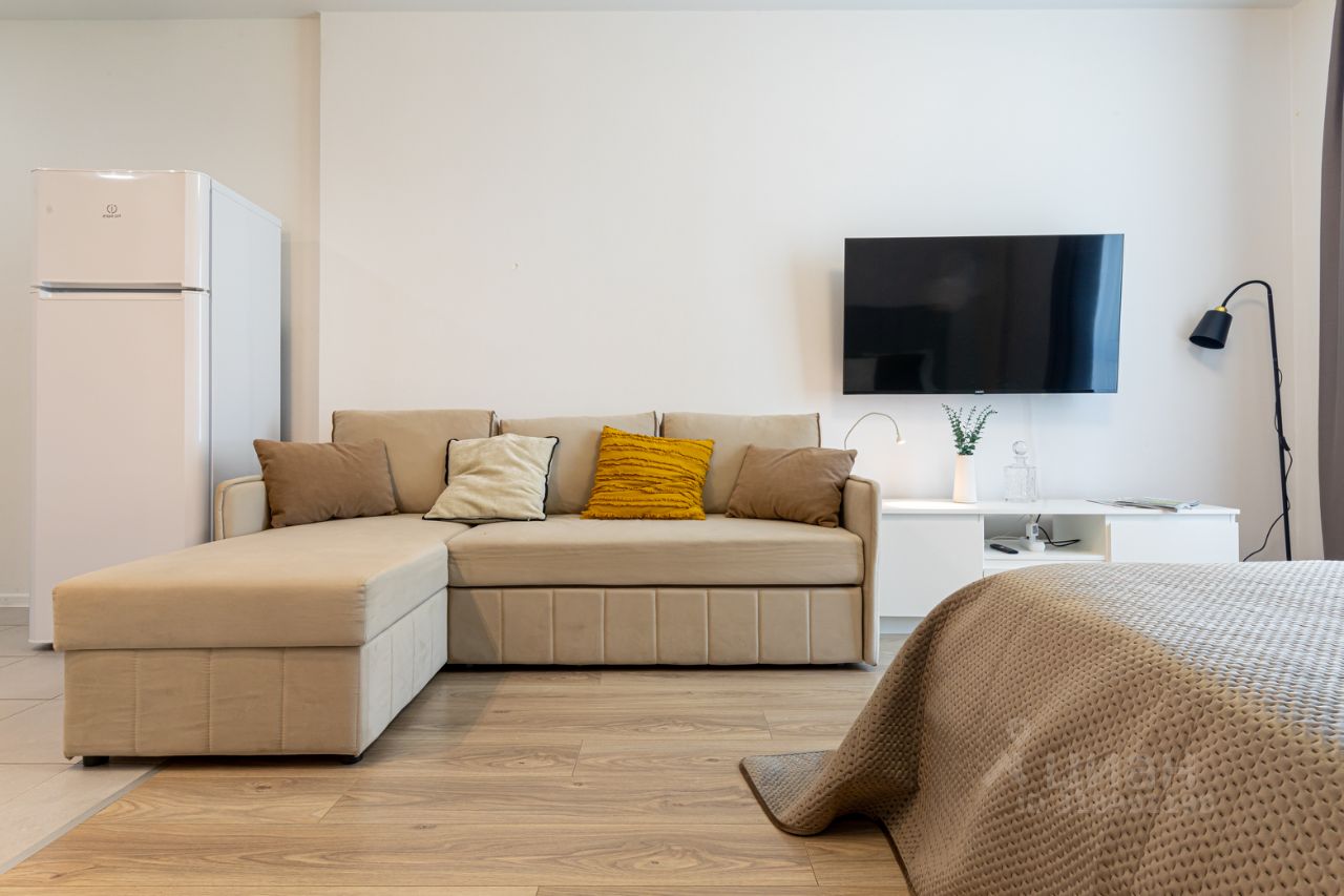 Вас ждет просторная студия с двуспальной кроватью с ортопедическим матрасом (160х200), и раскладным диванным уголком (140х200).
