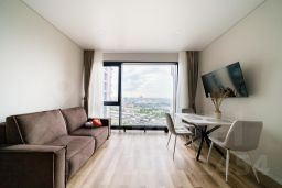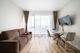 - В квартире имеются: двуспальная кровать (160х200), раскладной диван (160х200) и раскладное кресло (100х200).