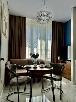 Здравствуйте! Сдаётся уютная однокомнатная квартира на проспекте Магеллана, 4. Квартира расположена на пятом этаже девятиэтажного дома, построенного в 2022 году. Общая площадь квартиры составляет 37 кв. м, Из которых 12 кв.м занимает жилая комната, а кухня 15 кв. м. Высокие потолки 3. 15 метра создают ощущение простора.