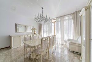 Предлагается в аренду прекрасная 4-комнатная квартира площадью 170 кв. м. в престижном районе Хамовников. Элитный дом на Зубовском проезде или "Дворцовая усадьба" класса премиум является уникальным созданием архитекторов Чиркова и Скуратова. В квартире выполнен авторский ремонт в классическом стиле, с использованием дорогих качественных материалов, мебель сделанная на заказ, высокие потолки, большие итальянские стеклянные двери. По планировке: большая и светлая гостиная, две спальни оборудованные своими санузлами, кабинет, кухня оборудованная всей необходимой бытовой техникой от ведущих европейских производителей, дополнительно есть гостевой санузел, отдельная постирочная, холл. Окна в квартире выходят в зеленый двор. Презентабельная входная группа. Дом оснащен двумя грузопассажирскими, скоростными лифтами типа KONE. Контрольно-пропускной пункт, круглосуточная охрана и видеонаблюдение. Огороженная территория с ландшафтным дизайном. Подземный паркинг (при необходимости можно арендовать м/место). Развитая инфраструктура района. В пешей доступности расположены парк усадьбы Л.Н. Толстого в Хамовниках, парк Усадьба Трубецких, сквер Девичьего поля, Фрунзенская набережная с пешеходным мостом в парк Горького.