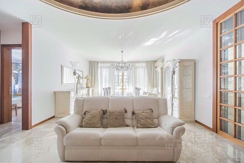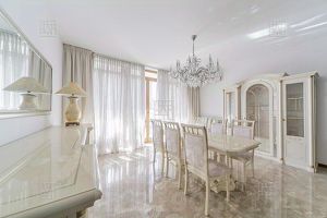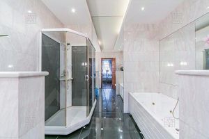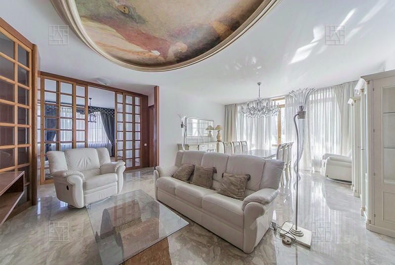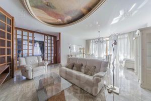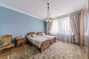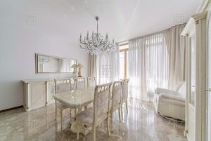 В квартире выполнен авторский ремонт в классическом стиле, с использованием дорогих качественных материалов, мебель сделанная на заказ, высокие потолки, большие итальянские стеклянные двери. По планировке: большая и светлая гостиная, две спальни оборудованные своими санузлами, кабинет, кухня оборудованная всей необходимой бытовой техникой от ведущих европейских производителей, дополнительно есть гостевой санузел, отдельная постирочная, холл. Окна в квартире выходят в зеленый двор.