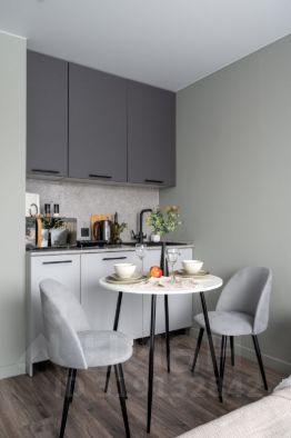 — Кухня оборудована всей необходимой бытовой техникой (индукционная плита, холодильник, микроволновка) и посудой;