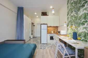 Светлая студия с широким комфортабельным диваном. Плотные шторы для крепкого сна. Бесплатная парковка прямо под окнами. Предоставляем отчетные документы. Окна выходят в чудесный зеленый двор. Рядом Ботанический сад, метро Окружная и Владыкино (5 минут).