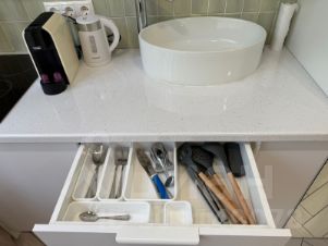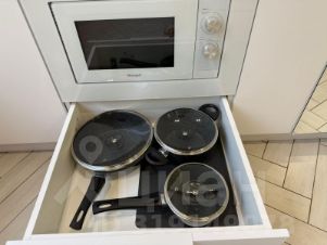 Встроенные микроволновая печь СВЧ и холодильник, капсульная кофемашина, кофе, чай, сахар, электрочайник, фильтр для воды, стильная посуда.