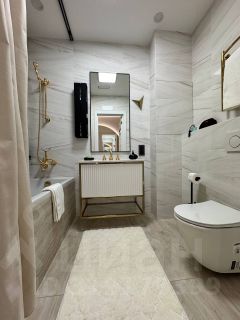 Вся бытовая техника в квартире современная. В вашем распоряжении будет электрическая плита, холодильник, посудомоечная машина, стиральная машинка с сушкой, телевизор. Центральное кондиционирование. По запросу предоставляем дополнительное спальное место (надувная высокая кровать двуспальная) на весь срок проживания (входит в стоимость).