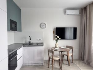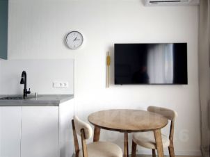 Квартира после евроремонта, что гарантирует современный и стильный интерьер. В студии есть вся необходимая мебель, включая обстановку на кухне и в комнате. Оснащена всей необходимой техникой: кондиционер, холодильник, посудомоечная машина, телевизор и стиральная машина. Ванная комната оборудована ванной. Окна выходят на улицу, что обеспечивает хорошее естественное освещение.