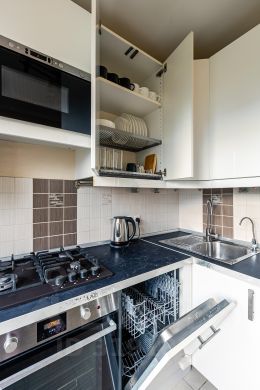 * Микроволновая печь, плита, холодильник, чайник, набор посуды