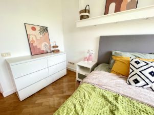 В квартире есть все для комфортной и приятной жизни: теплые полы, дубовый паркет, ванная, гигиенический душ, множество мест для хранения, огромные зеркала в полный рост, раскладной диван и кровать с новым ортопедическим матрасом.