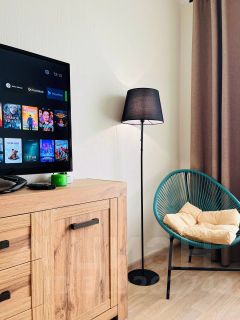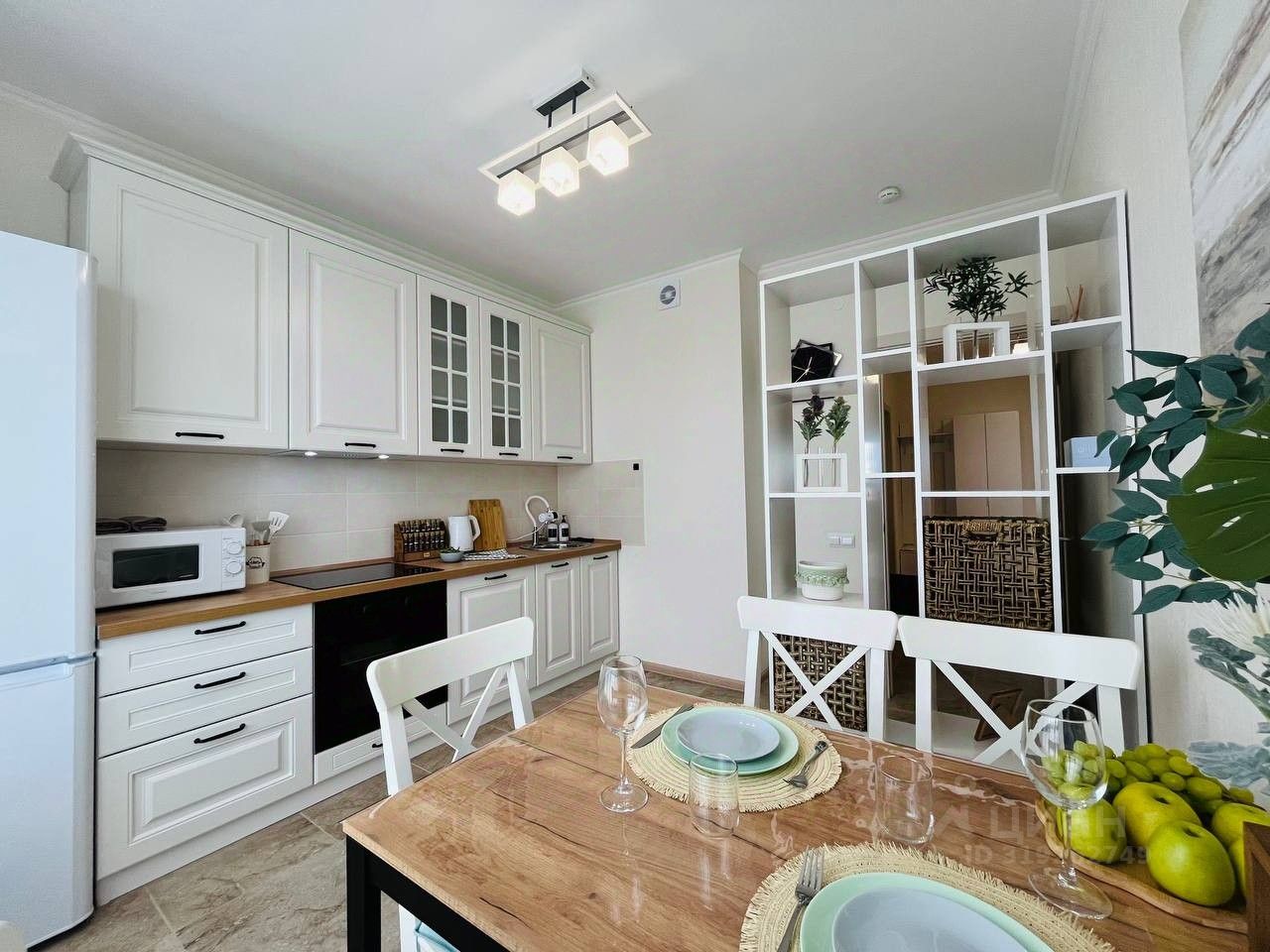 - Кухня со всей необходимой посудой и техникой: холодильник, микроволновка, чайник, духовка