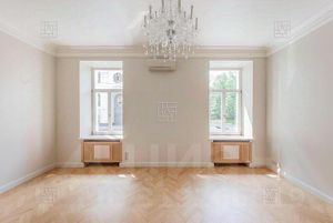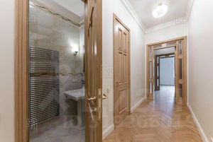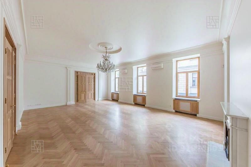 Эксклюзивная дизайнерская отделка в классическом стиле . Высокие потолки ,большое количество окон - все это создает в помещении ощущение пространства. Большая гостиная с камином, кухня-столовая, 4 спальни, 2 ванные комнаты, гостевой санузел, гардеробная, холл. В квартире установлен кухонный гарнитур с премиальной бытовой техникой Kuppersberg. Кондиционеры. Квартира предлагается без мебели.