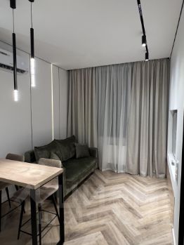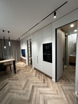 Интерьер:— Дизайнерский ремонт в современном стиле— Использованы только качественные, премиальные материалы— В отделке душевой — экологически чистый микроцемент: тактильно приятный, в отличие от плитки, не бывает холодным