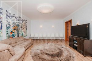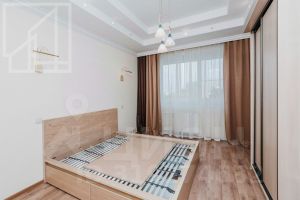 Планировка: кухня, гостиная, спальня, спальня с гардеробной, спальня с санузлом, гостевой санузел, совмещенный санузел, прихожая, лоджия. Потолки 3м. Квартира частично меблирована (мебель может быть куплена под жильца), есть вся необходимая для комфортного проживания бытовая техника.