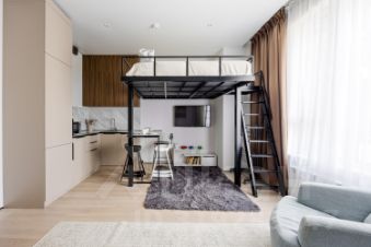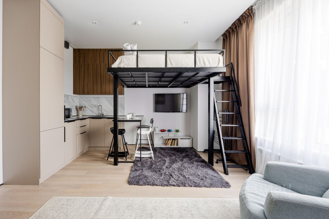 Рассчитана на 4 человека: комфортная двуспальная кровать на втором уровне и удобный двуспальный диван.