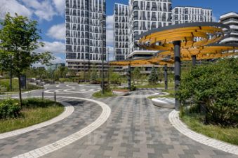 — На территории жилого комплекса Символ есть свой парк "Зеленая река" протяженностью 3 км, он включает беседки и перголы для тихого отдыха и прогулок, игровые и спортивные площадки, беговые и велодорожки, памп-треки, сухой фонтан и ярмарочную площадь.