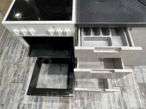 •Кухня выполнена в современном стиле и оснащена необходимой техникой (электроплита с духовым шкафом, холодильник, вытяжка, стиральная машина, микроволновая печь, чайник, посуда и приборы)