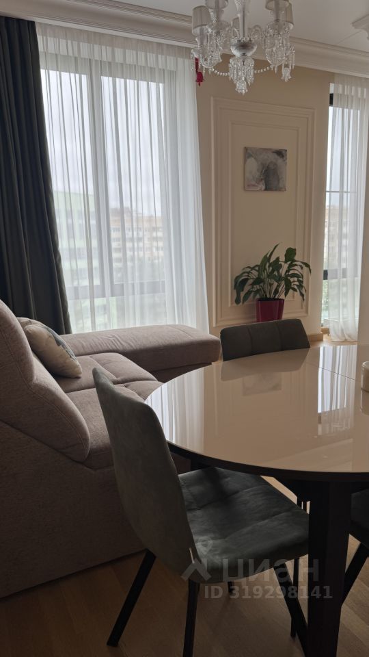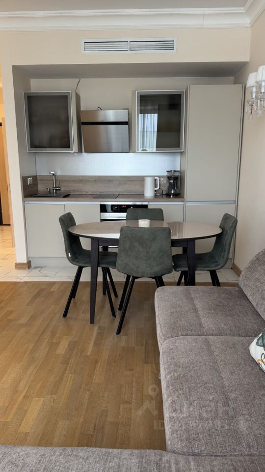 Сдается в аренду стильная двухкомнатная квартира - студия на Ходынской улице, 2, в Москве. Просторная площадь 47 кв. м на 6-м этаже современного 44-этажного монолитного дома, построенного в 2018 году. Высокие потолки в 3 метра создают ощущение простора и свободы.