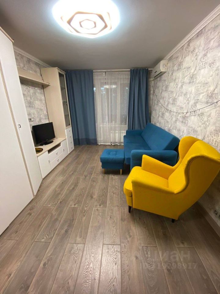 Скандинавский стиль с акцентами: синий диван , жёлтое кресло ИКЕА