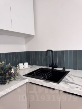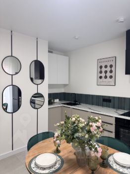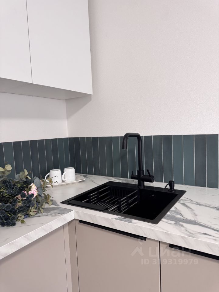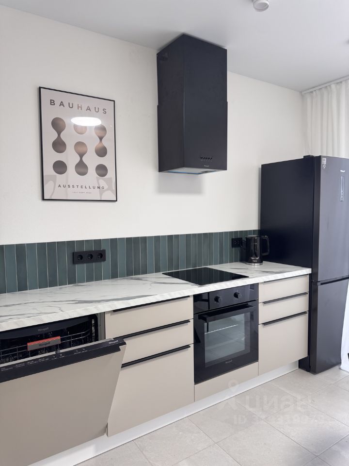 Кухня полностью укомплектована: посудомоечная машина, духовой шкаф, холодильник, фильтр для воды — всё для вашего удобства.