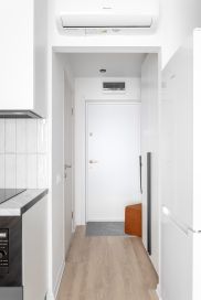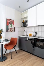 -в квартире есть вся бытовая техника и мебель (фен, утюг, гладильная доска, стиральная машина, плита, холодильник, СВЧ-печь, обеденная зона, шкафы, посуда для приготовления пищи и т.д.);