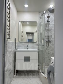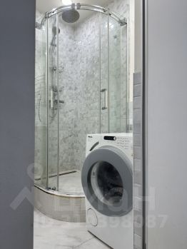 В ванной комнате душевая кабина, стиральная машинка.