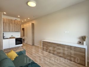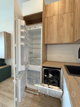 Студия укомплектована необходимой мебелью и техникой для проживания (холодильник, посудомоечная машина, духовка, варочная панель, кондиционер, стир.машина).