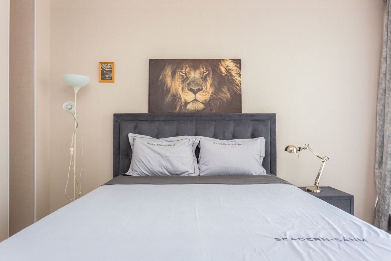 • В одной — двуспальная кровать с ортопедическим матрасом.