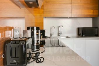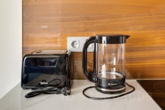 Вы сможете с комфортом разместиться на большой двуспальной кровати размера king-size, воспользоваться удобным раскладным креслом для дополнительного гостя. Апартаменты имеют полноценную удобную кухню, где Вы сможете приготовить свои любимые кулинарные шедевры. Кухня оборудована всей необходимой техникой: электрическим чайником, микроволновой печью, духовым шкафом, вытяжкой, холодильником, кофемашиной и даже тостером. Высокоскоростной интернет и Смарт-Тв позволят насладиться просмотром любимых фильмов и сериалов.