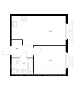 Большая кухня-гостиная, совмещенный санузел, просторный коридор и спальня.