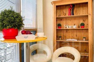Укомплектованная кухонная зона - столовые приборы, посуда, чай /кофе/сахар/масло;