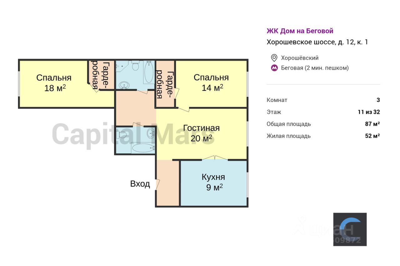 Рядом работает ТЦ "На Беговой", магазины, кафе и рестораны, аптеки, медклиники, а в 25 минутах ходьбы раскинулся парк Ходынское Поле. Удобный выезд на ТТК и близость метро "Беговая" обеспечивают транспортную доступность.