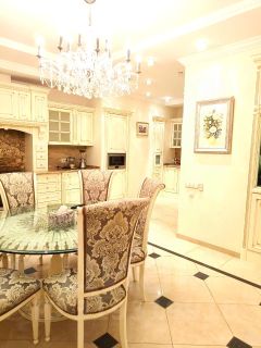 Современная, легкая классика в стиле Ренессанс. С дорогой Итальянской мебелью, кровати с ортопедическими матрасами, встроенный кухонный гарнитур под единой столешницей, оснащен бытовой техникой ведущих мировых брендов. Аквариум.