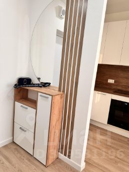 Прихожая обустроеная необходимой мебелью для хранения обуви и вещей.