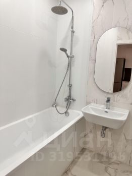 В санузле: стиральная машина, ванная, раковина, зеркало, унитаз.