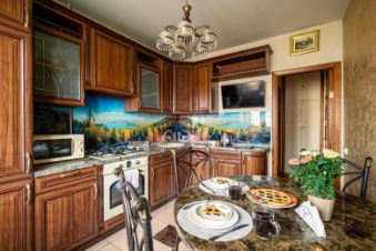 * Оснащена бытовой техникой: плита, духовка, микроволновая печь, холодильник, электрический чайник