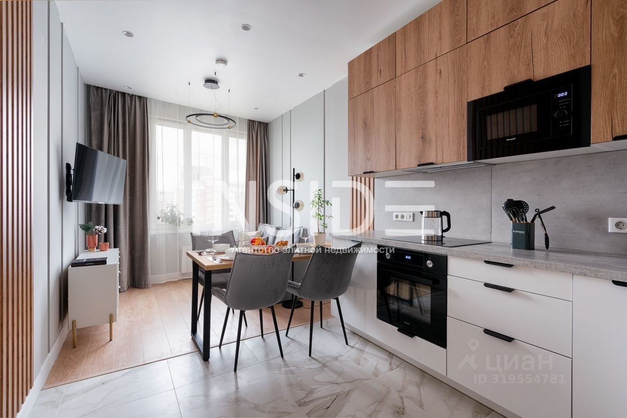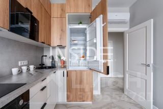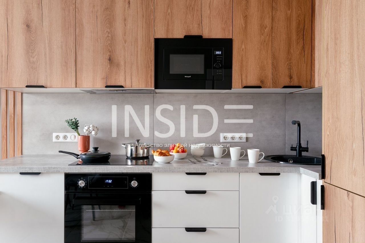 - Большая функциональная кухня: индукционная варочная панель, духовка, микроволновка, холодильник, чайник