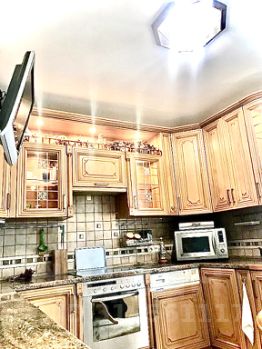 - Полный комплект качественной техники: стиральная и посудомоечная машины, электрическая духовка, варочная панель, микроволновая печь, увеличенный холодильник, кондиционеры и 3 телевизора