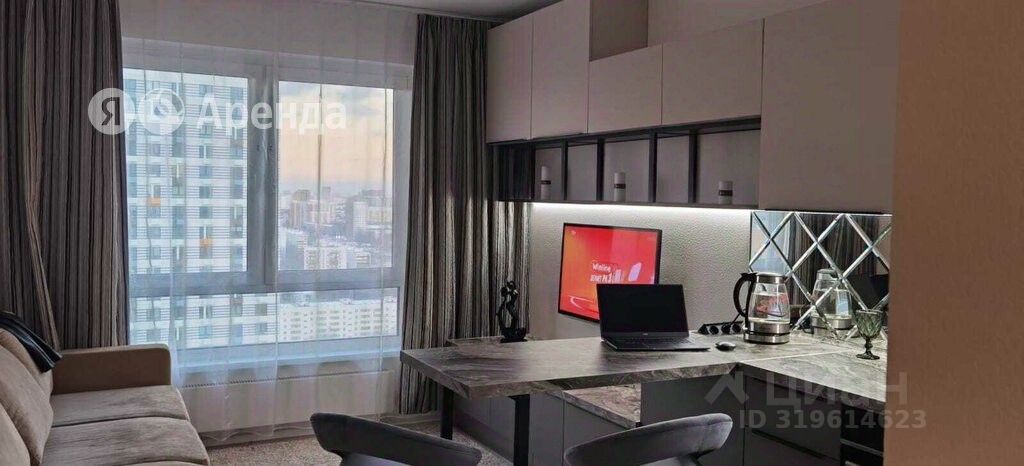 Сдаётся студия площадью 20 кв.м. с дизайнерским ремонтом на 28 этаже в 32-этажном доме на срок от 11 месяцев. Из техники есть: