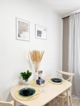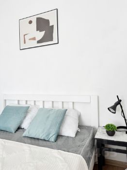 — Дизайн + комфорт: свежий интерьер в сканди-минимализме, ортопедическая кровать 160200, blackout-шторы & тихий кондиционер.
