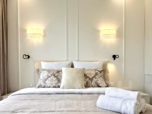 -в квартире есть вся бытовая техника и мебель (кондиционеры,посудомойка, фен, утюг, гладильная доска, стиральная машина, плита, холодильник, СВЧ-печь, кондиционер, духовой шкаф , обеденная зона, шкафы, и т.д.);