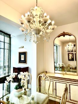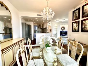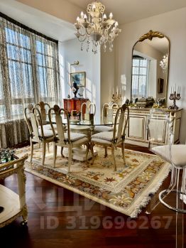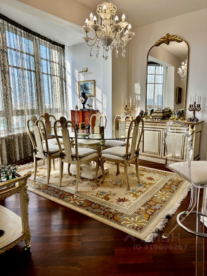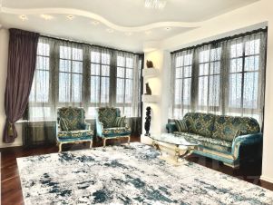 Квартира выполнена в современном стиле неоклассики с использованием высококачественных натуральных отделочных материалов. Высокие потолки, панорамные окна, полы-мрамор с подогревом и массив реликтового красного дерева.