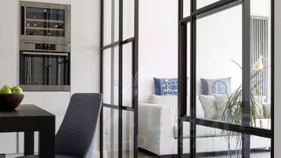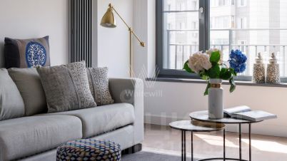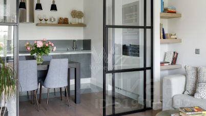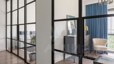 Квартира с 1-й спальней в комплексе бизнес-класса "Level Кутузовский". Квартира общей площадью 57 м² расположена на 6 этаже. Выполнен современный ремонт по авторскому дизайн-проекту с зонированием пространства стеклянными дверьми-перегородками во французском стиле, изготовленными на заказ. Благодаря большим окнам и высоким потолкам квартира наполнена естественным светом.