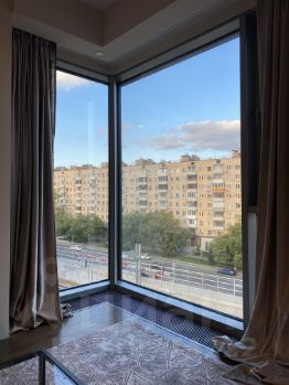 Самая лучшая планировка евродвушки во всём доме, панорамные угловые окна (Schuco) на центр Москвы, комфортный для жизни и здоровья этаж, зонированное пространство кухни-гостиной, самая большая спальня с угловым окном (20,8м) во всём комплексе. Дизайнерская мебель из ясеневого шпона, кухня - итальянские фасады, новая премиальная техника Bosch 6 серии, телевизор Philips 55 диагональ, плитка Villeroy&Boch, сантехника Vitra, пол инженерная доска, двери массив дерева. Два вместительных шкафа, продумано очень много места для хранения. В апартаментах подключена система охранного видеонаблюдения и контроля доступа, а также система кондиционирования Samsung. Имеются тёплые полы, много сценариев освещения, шкафы с внутренней подсветкой, напольные конвекторы.