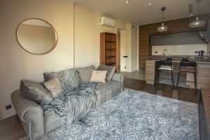 Стильная и очень уютная квартира укомплектована новой высококачественной мебелью и премиальной бытовой техникой под ключ, дизайнерский интерьер.