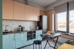 Самые стильные апартаменты в данной локации! Совершенно новый дизайнерский ремонт приведет вас в восторг и обеспечит яркое настроение на протяжении всего дня. Для вашего комфорта предусмотрено все до мелочей: от мягких домашних тапочек и вафельных халатов, до средств личной гигиены; от базовой посуды, до кофемашины; от обувной ложечки, до кондиционера на каждую комнату. Но самая главная особенность квартиры — изумительный панорамный вид на реку и красивые новостройки, что на том берегу, а также мосты и размеренно проплывающие теплоходы с причудливыми электросудами речного метро. Несмотря на малую этажность, разглядеть можно многие районы города, а вечером атмосфера и вовсе становится по волшебному особенной.