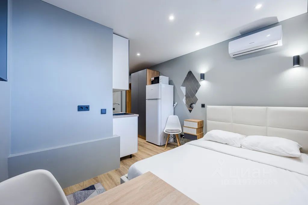 Номер оборудован всем необходимым для краткосрочного и длительного проживания. Двуспальная кровать, оборудованная кухня с возможностью приготовления пищи, телевизор, wi-fi, совмещенный сан.узел. Окна-форточки.