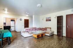 Большой плюс- имеется вся посуда, вся кухонная утварь, посудомоечная машина, утюг, постельное белье, полотенца.